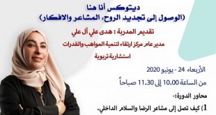 أطلقت جمعية النهضة النسائية بدبي – مركز النهضة الديني الثقافي، *مبادرة قرآني نبض حياتي لعام ٢٠٢٠* عبر برنامج Teams ، و ذلك يوم الأحد 2020/6/14 ، تضم المبادرة عدد 16 حلقة في حفظ ومراجعة القرآن الكريم، تضم الحلقات الحفظ بين الجزء الواحد إلى القرآن الكريم كاملاً، منها: ثمان حلقات …