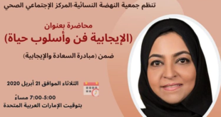 أكمل القراءة »جمعية النهضة النسائية- المركز الإجتماعي الصحي تنظم محاضرة الإيجابية فن وأسلوب حياة مع المدربة سلوى آل رحمة