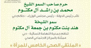 تحت رعاية سمو الشيخة هند بنت مكتوم بن جمعة آل مكتوم وبمناسبة إطلاق الملتقى الصحي الخامس للمرأة تحت رعاية سمو الشيخة/ هند بنت مكتوم بن جمعة آل مكتوم -حفظها الله حرم صاحب السمو الشيخ محمد بن راشد آل مكتوم – نائب رئيس الدولة رئيس مجلس الوزراء – حاكم …