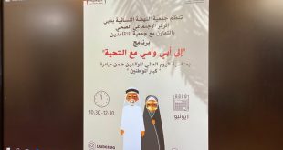 نظمت جمعية النهضة النسائية بدبي – المركز الإجتماعي الصحي، بالتعاون مع جمعية الإمارات للمتقاعدين، بمناسبة اليوم العالمي للوالدين، الذي يصادف الأول من يونيو برنامجاً ترفيهياً بعنوان ” إلى أبي وأمي مع التحية ” في مركز سعادة كبار المواطنين وبلغ عدد الحضور 18، حيث يهدف البرنامج إلى تعزيز روح التواصل بين …
