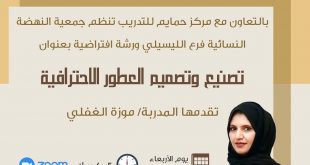 تستمر جمعية النهضة النسائية تقديم برنامج روائع الإجازة عبر منصة zoom لليوم الثالث على التوالي و قد ضم البرنامج عدة ورشات و برامج إثرائية متنوعة . قُدّمت ورشة بعنوان “الطباعة على التيشيرت بطرق مختلفة” والتي قدمتها أ.سمر عبد المعطي، حيث تم عرض عدة طرق للطباعة على التيشيرت بأبسط الطرق و …