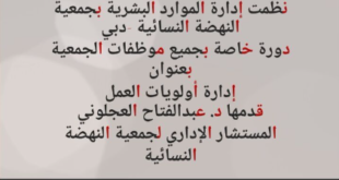 أكمل القراءة »جمعية النهضة النسائيةب دبي/ مركز النهضة للاستشارات والتدريب يبث رسائل تثقيفية لبعض الظواهر المجتمعية بما يواكب المستجدات من خلال نشر فيديو إرشادي تقدمه الأستاذة عائشة الطنيجي