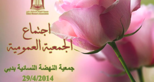 في مبادرة استثنائية واستباقية تعزيزا ودعما لثقافة الولاء للقيادة الرشيدة بإماراتنا الحبيبة والانتماء لتراب الوطن الغالي وتأصيلا للتلاحم الوطني بين القيادة والقطاعات الشعبية والمجتمعية بالدولة رفع اجتماع الجمعية العمومية لجمعية النهضة النسائية – بدبي اجتماعه المنعقد صباح اليوم الثلاثاء الموافق 29/ابريل /2014 م برقيات تهنئة إلى المقامات السامية. صاحب السمو …